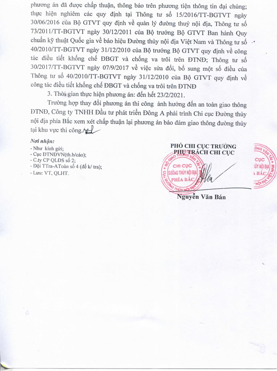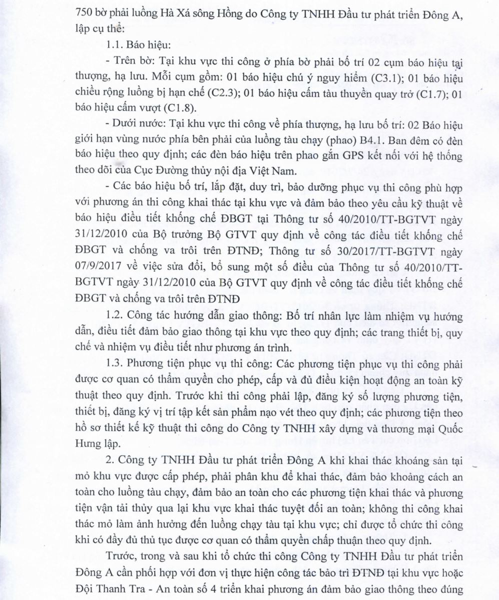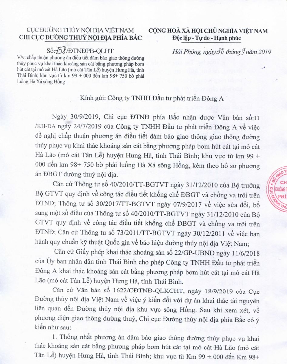 Chấp thuận PA điều tiết bảo đảm GTĐT phục vụ khai thác khoáng sản cát bằng phương pháp bơm hút cát tại mỏ cát Hà Lão (mỏ cát Tân Lễ) huyện Hưng Hà, tỉnh Thái Bình; khu vực từ km 99 + 000 đến km 98+ 750 bờ phải luồng Hà Xá sông Hồng