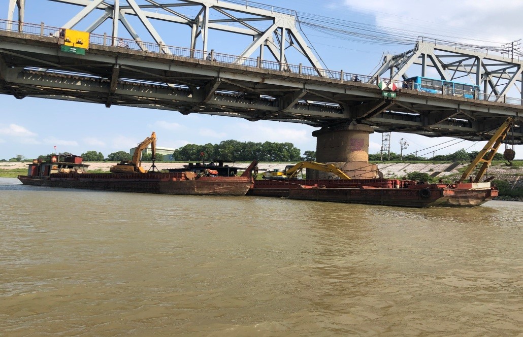 Từ ngày 04/5/2021 đến ngày 20/5/2021, Chi cục Đường thủy nội địa (ĐTNĐ) phía Bắc chỉ đạo Công ty Cổ phần Quản lý Đường sông số 6, Đội Thanh tra - An toàn số 2 phối hợp cùng Đội cảnh sát giao thông đường thủy số 2, PC08- Công an TP Hà Nội thực hiện phân luồng hạn chế giao thông đường thủy nội địa để phục vụ thi công phá dỡ, thanh thải trụ cũ cầu Đuống km 59+000 sông Đuống năm 2021.