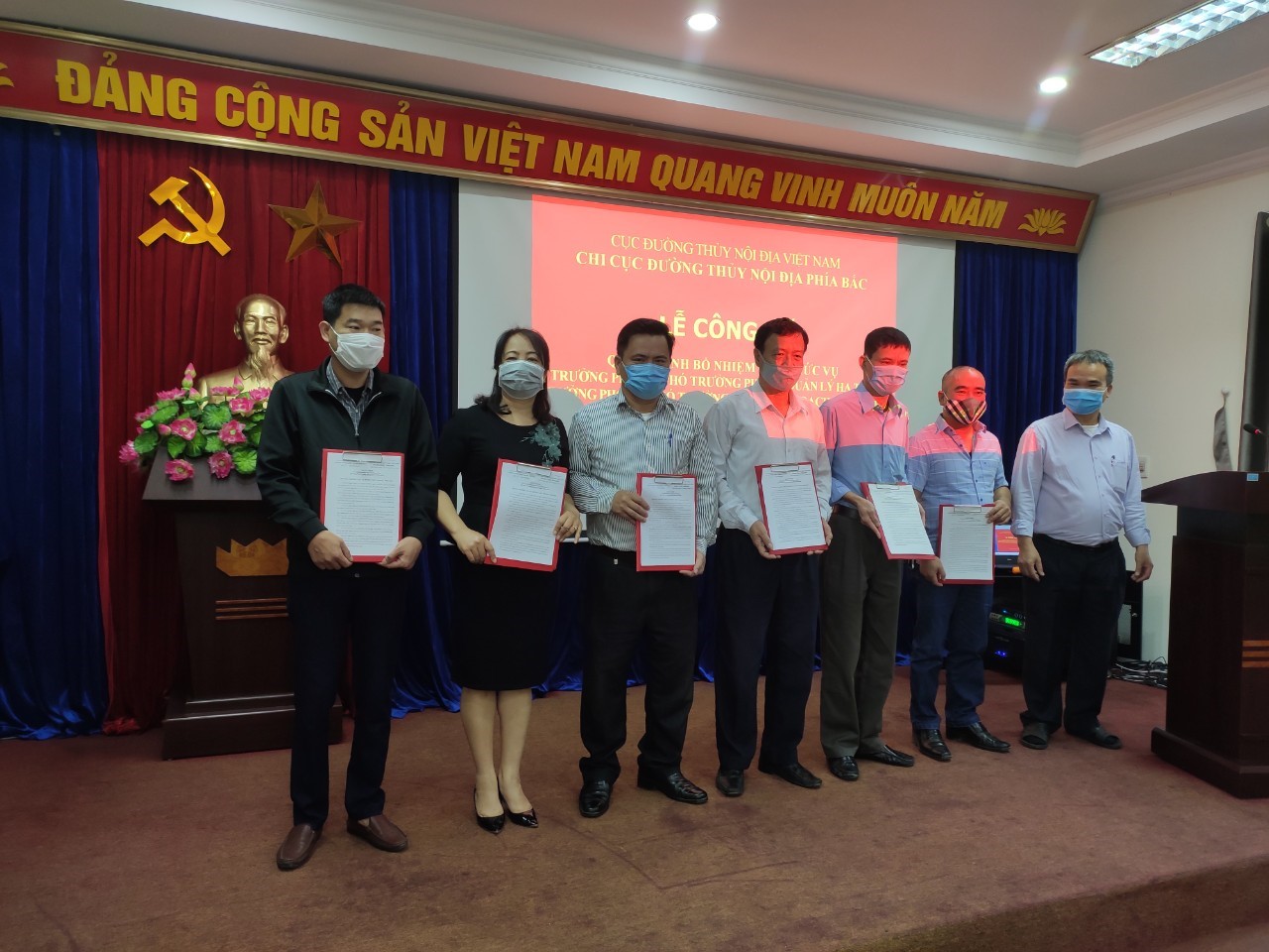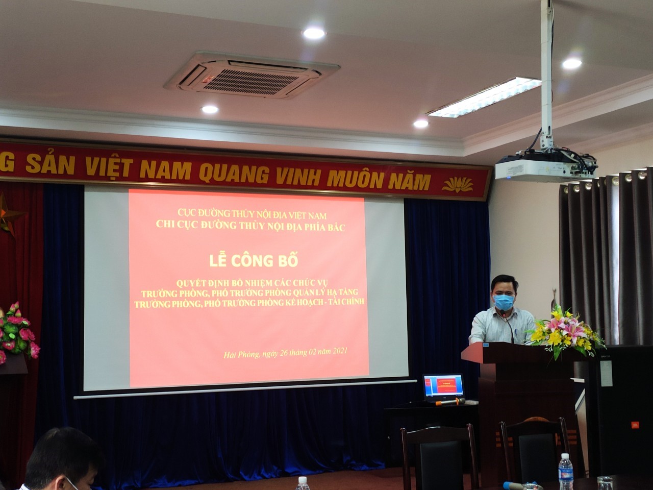 Ngày 26/02/2021 Chi cục ĐTNĐ phía Bắc đã tổ chức Lễ công bố và trao quyết định bổ nhiệm các chức vụ Trưởng phòng, Phó trưởng phòng đối với phòng Quản lý hạ tầng và phòng Kế hoạch - Tài chính; tham dự buổi Lễ có các đồng chí Lãnh đạo Chi cục Đường thủy nội địa phía Bắc, cán bộ, công chức các phòng nghiệp vụ.