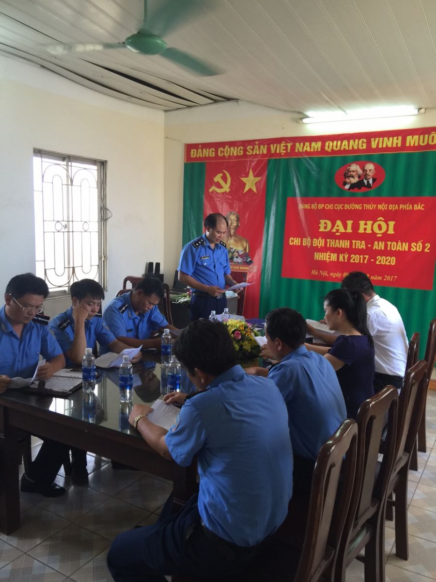 Chiều ngày 08/8/2017 tại Đội Thanh tra - An toàn số 2 tổ chức Đại hội Chi bộ nhiệm kỳ 2017-2020. Tới dự Đại hội có đồng chí Nguyễn Công Minh - Chi cục trưởng Chi cục ĐTNĐ phía Bắc - Ủy viên BCH Đảng ủy Cục ĐTNĐ Việt Nam - Bí thư Đảng bộ bộ phận Chi cục ĐTNĐ phía Bắc, đồng chí Vũ Thị Châu Loan - Phó Trưởng phòng Tổ chức Hành Chính - Đào tạo - Ủy viên BCH Đảng bộ bộ phận Chi cục ĐTNĐ phía Bắc cùng toàn bộ các đồng chí đảng viên Chi bộ Đội TT-AT số 2.