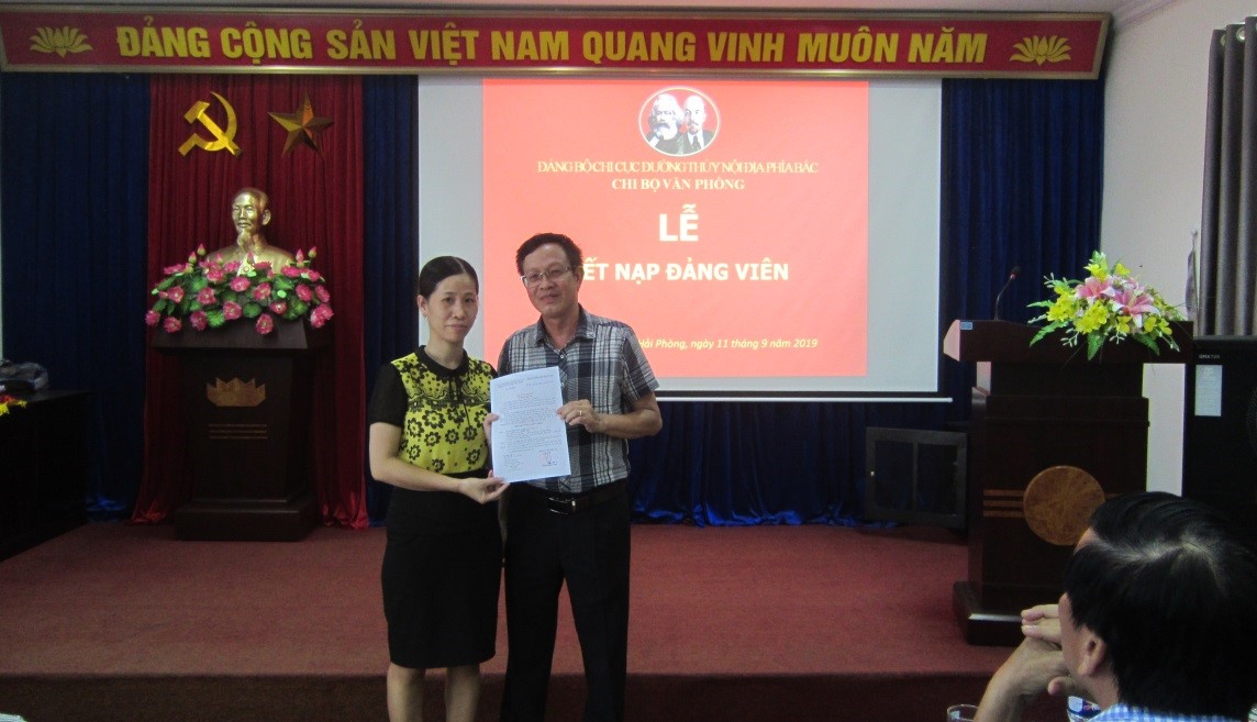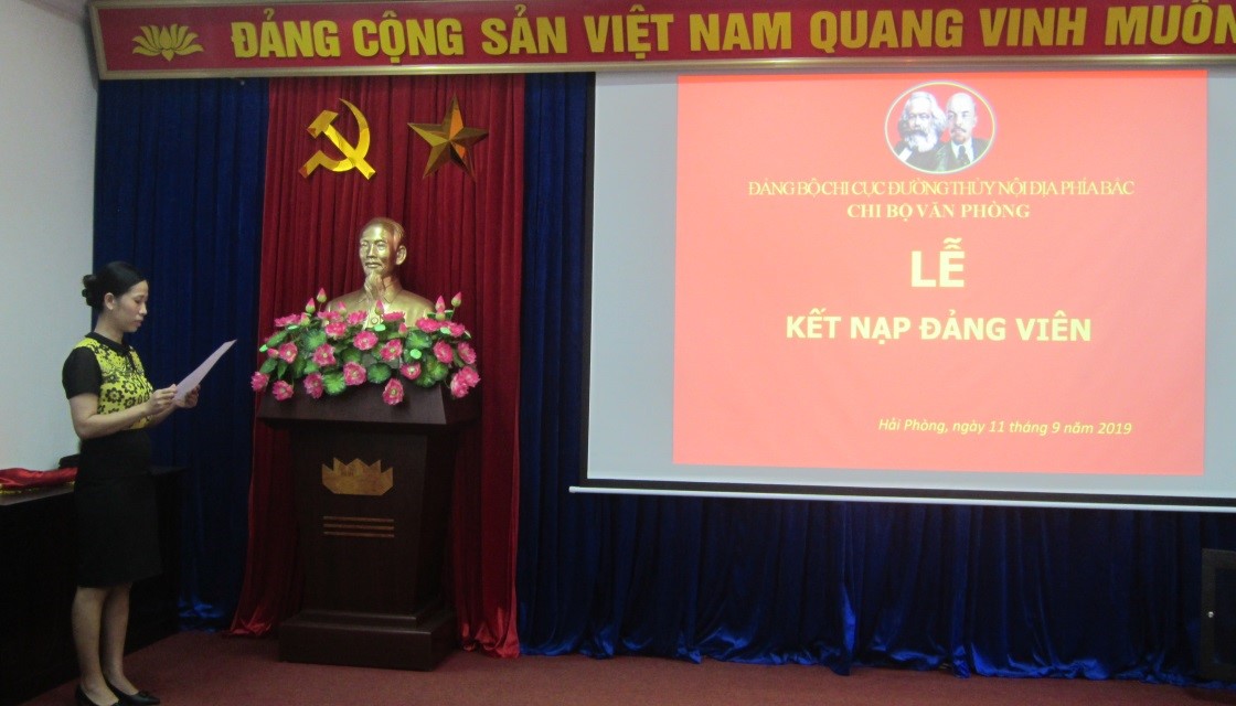 Thực hiện Quyết định số 127-QĐ/ĐU ngày 16/8/2019 của Đảng ủy Cục Đường thủy nội địa Việt Nam về kết nạp đảng viên; được sự đồng ý của Đảng ủy Cục Đường thủy nội địa Việt Nam, Đảng ủy Chi cục Đường thủy nội địa phía Bắc, ngày 11/9/2019 Chi bộ Văn phòng tổ chức Lễ kết nạp đảng viên cho quần chúng Nguyễn Thị Thanh Tâm.