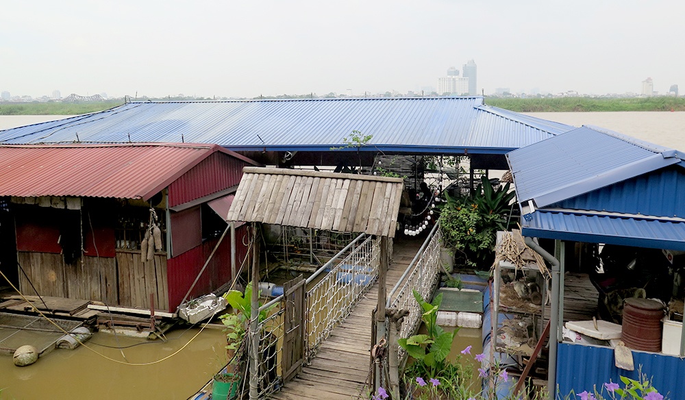 Khảo sát của PV, phía bờ phải sông Hồng đoạn gần cầu Long Biên cũng có nhiều nhà hàng, nhà nổi khác đang neo đậu. Một số nhà nổi thi thoảng hoạt động kinh doanh, kết hợp nuôi thủy sản.