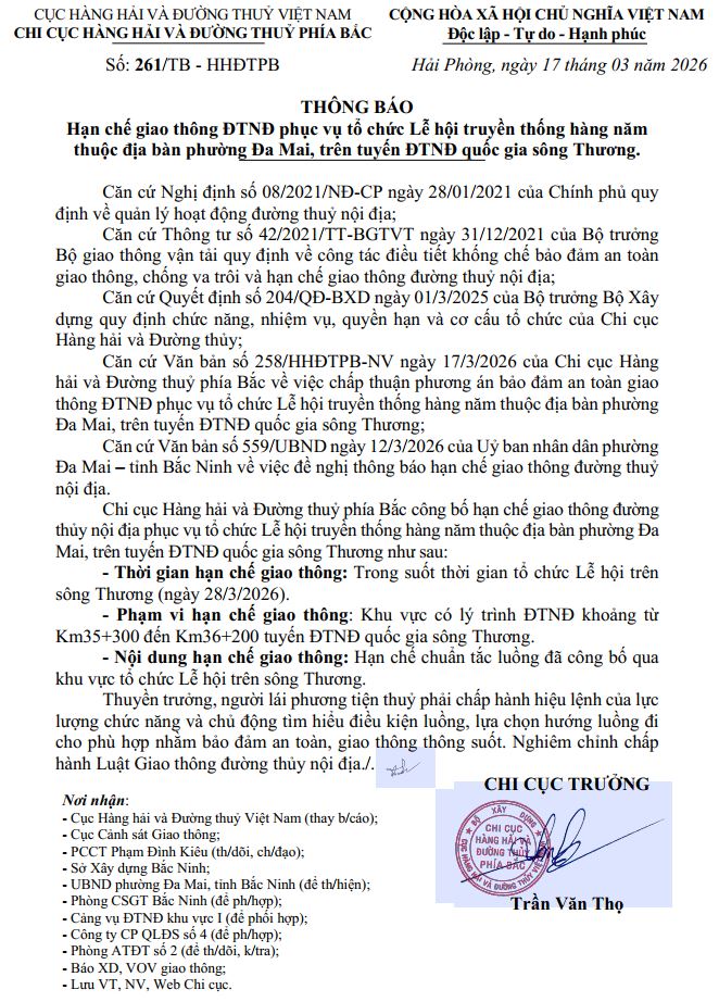 THÔNG BÁO Hạn chế giao thông ĐTNĐ phục vụ tổ chức Lễ hội truyền thống hàng năm thuộc địa bàn phường Đa Mai, tr ...