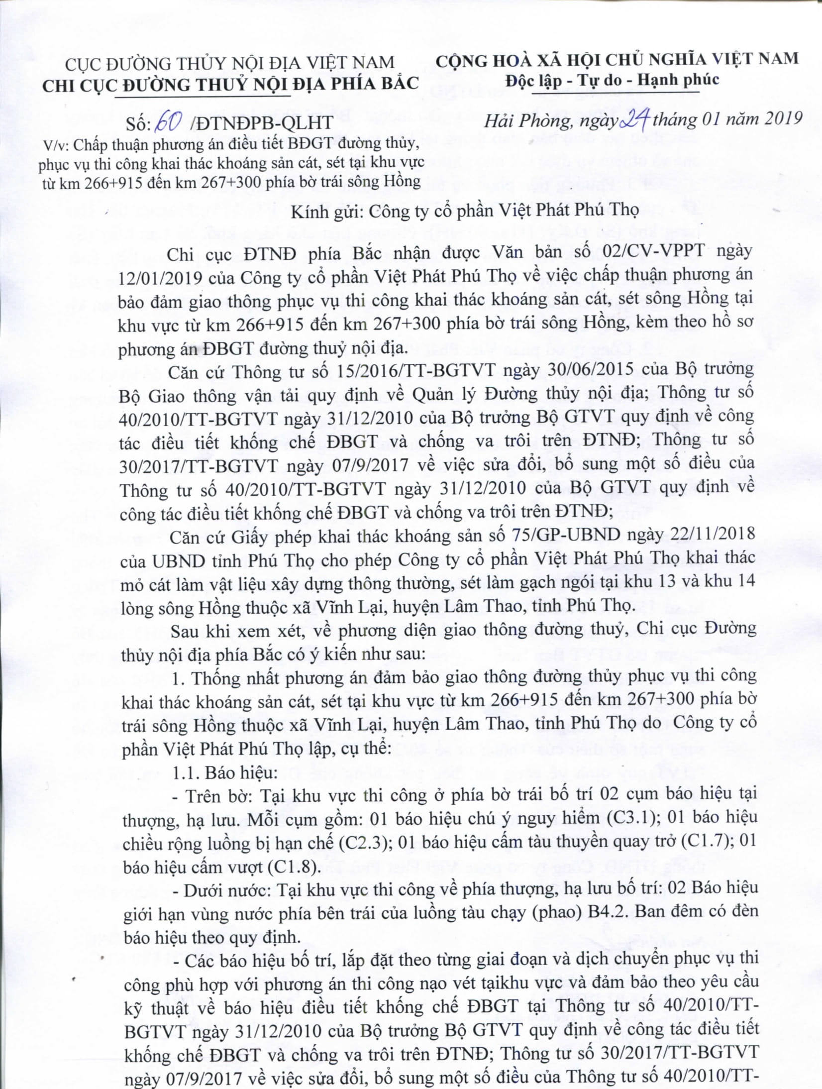 Chấp thuận PA điều tiết bảo đảm giao thông đường thủy khu vực km 266+915 đến km 267+300 bờ trái sông Hồng